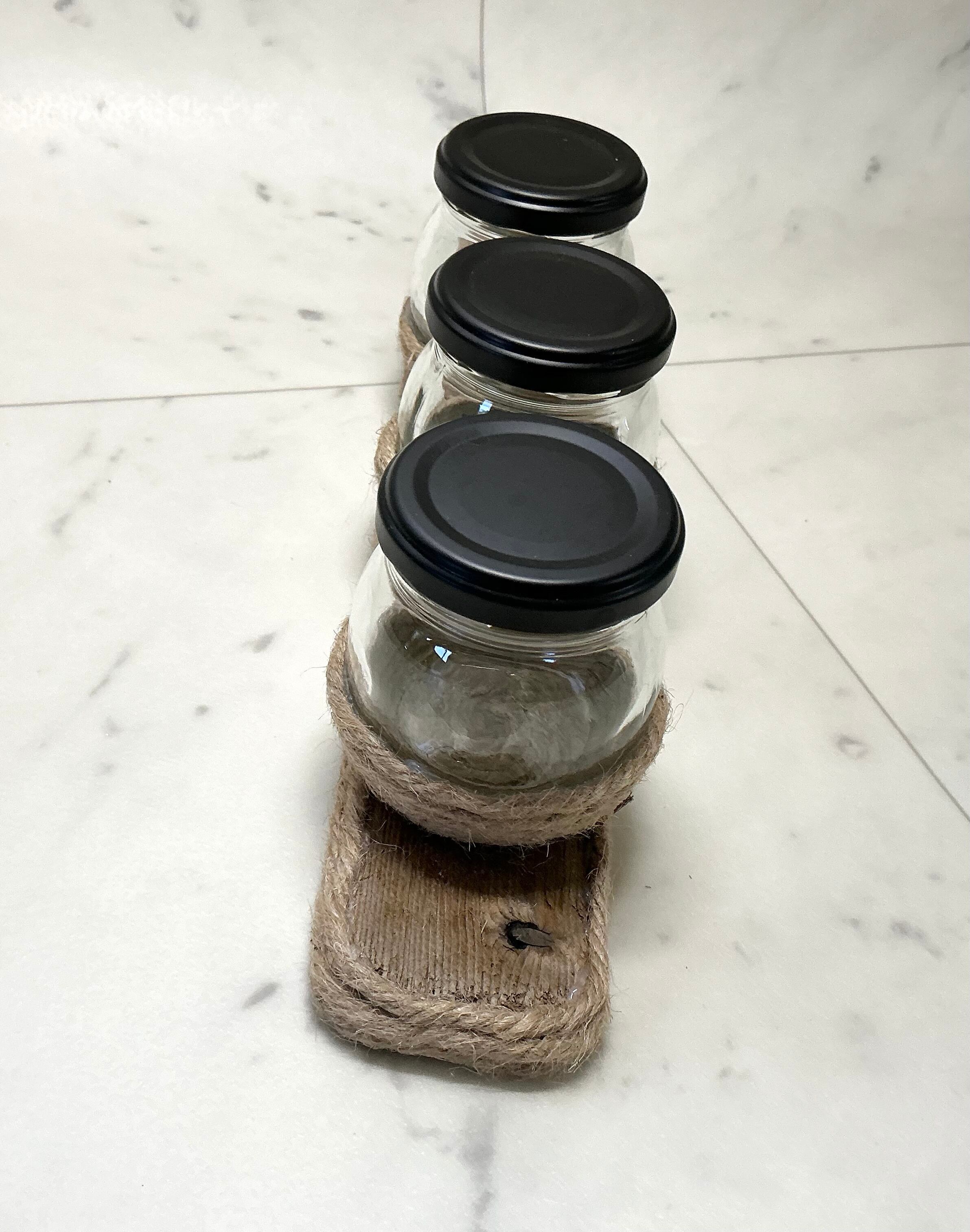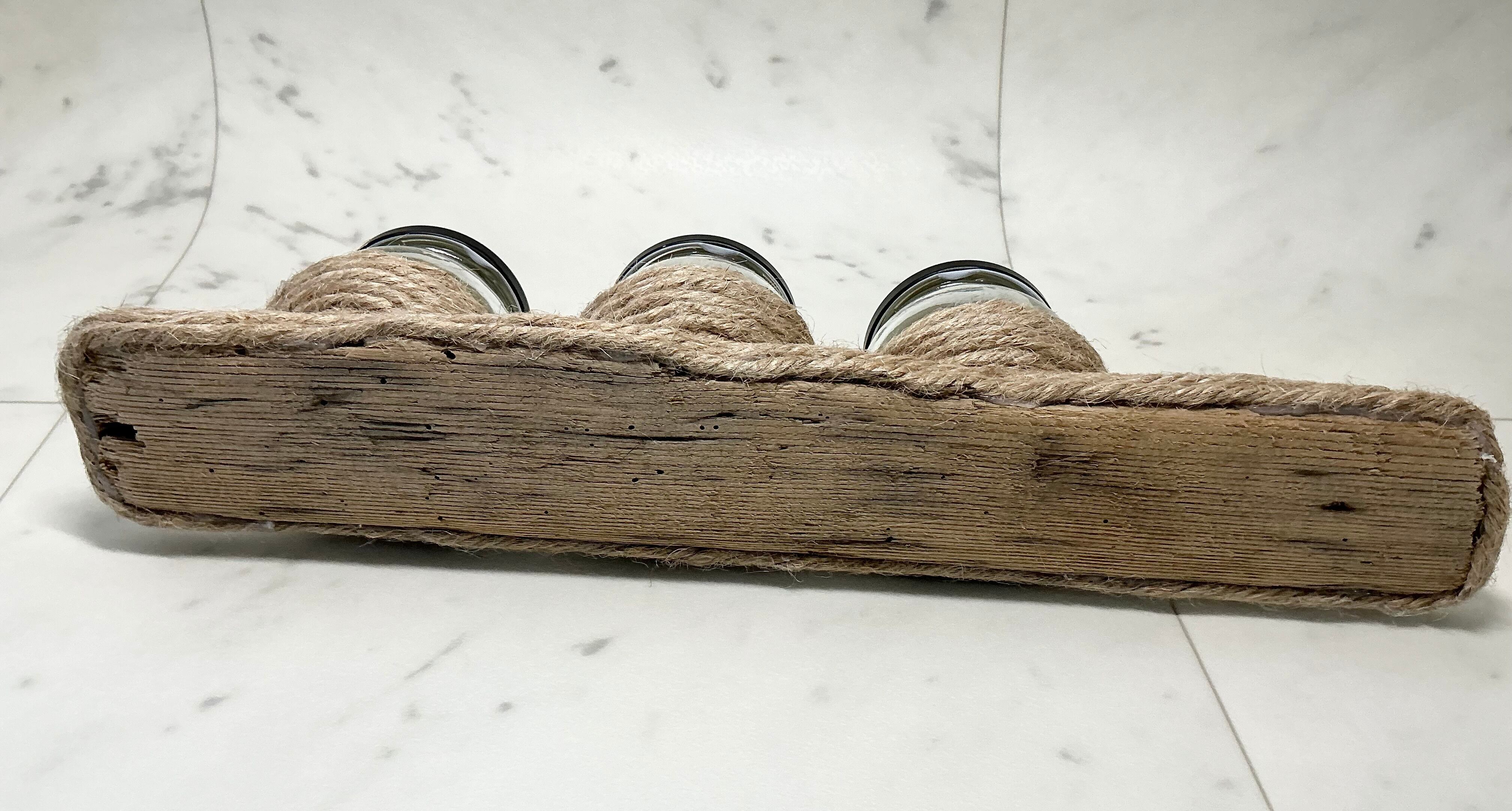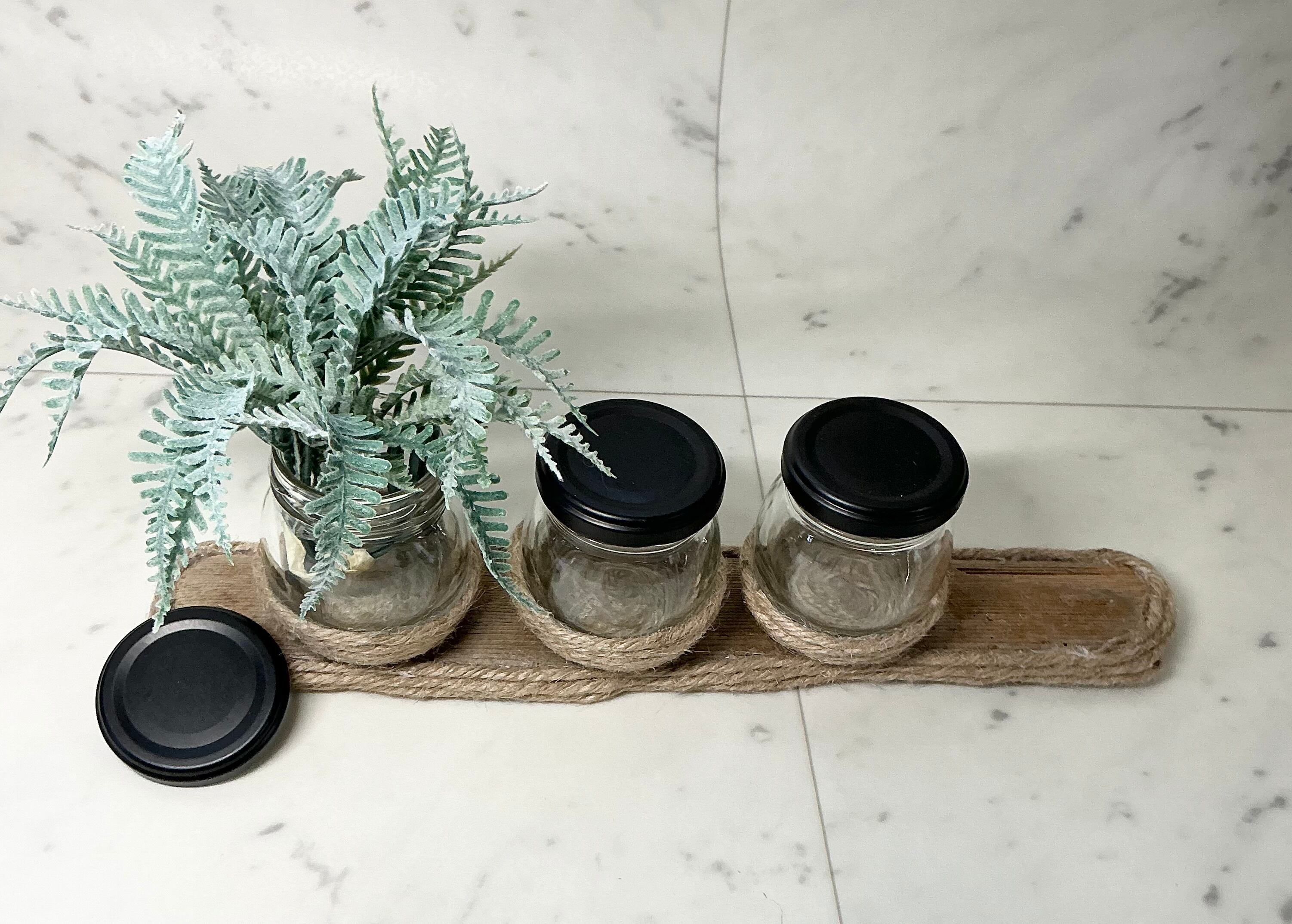 瓶を麻紐で巻き 3つ乗せました