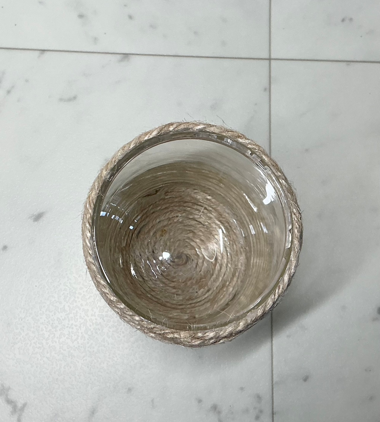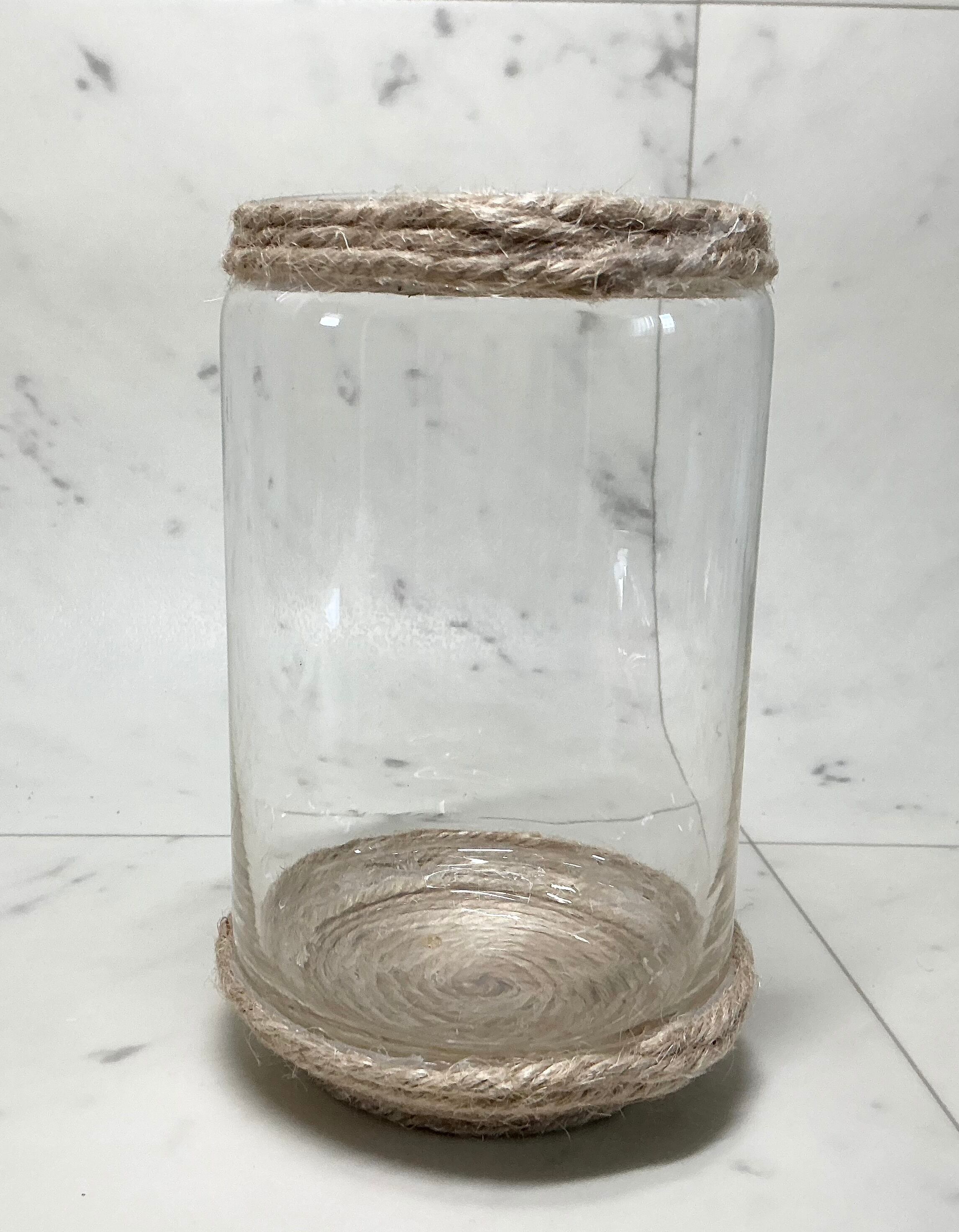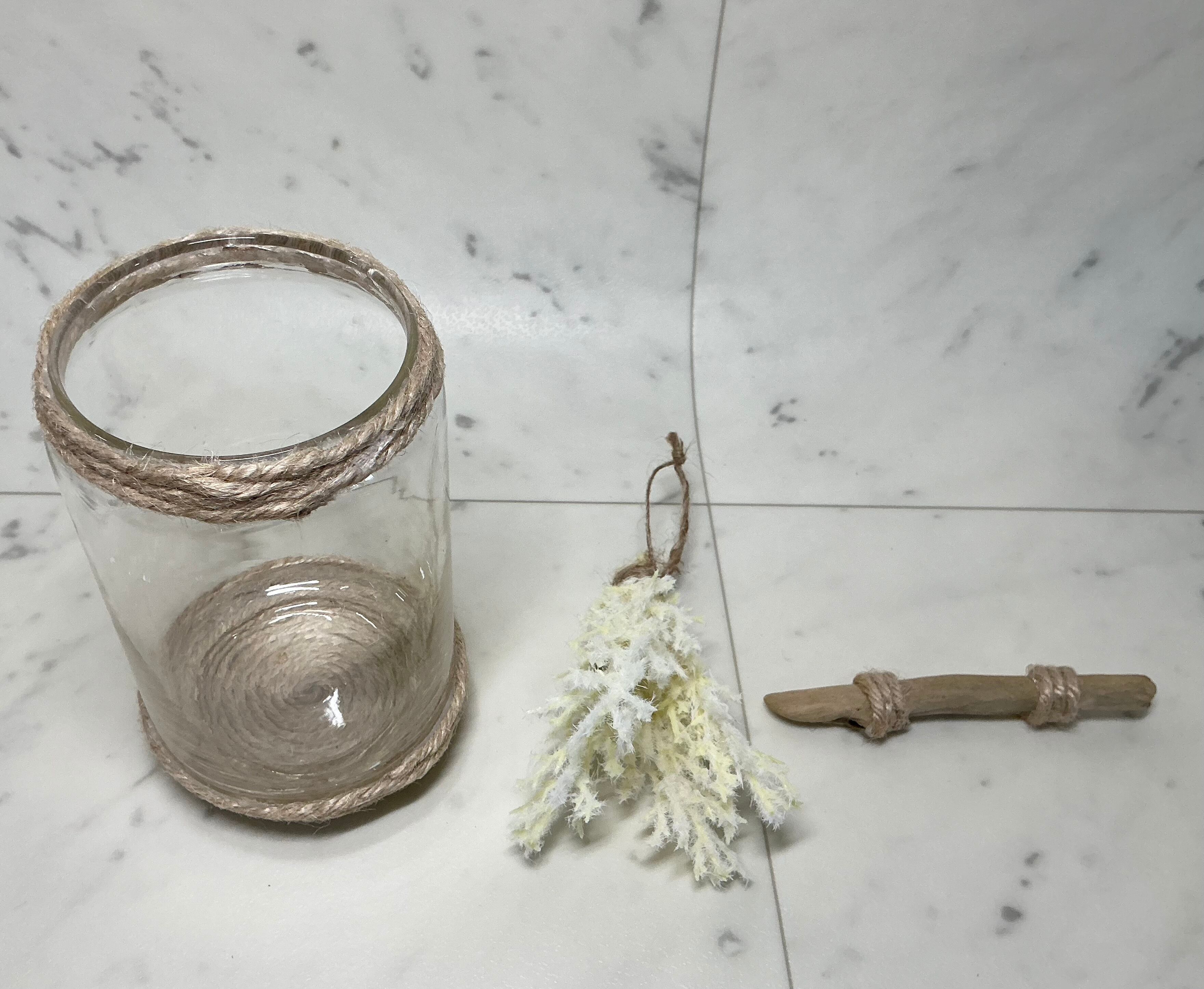 ボトル瓶に麻紐を巻きつけ