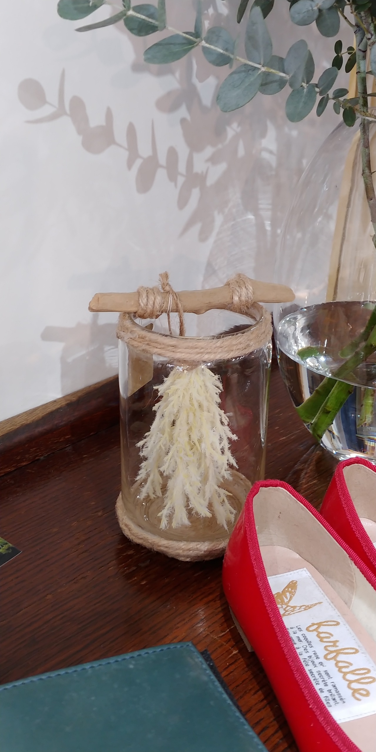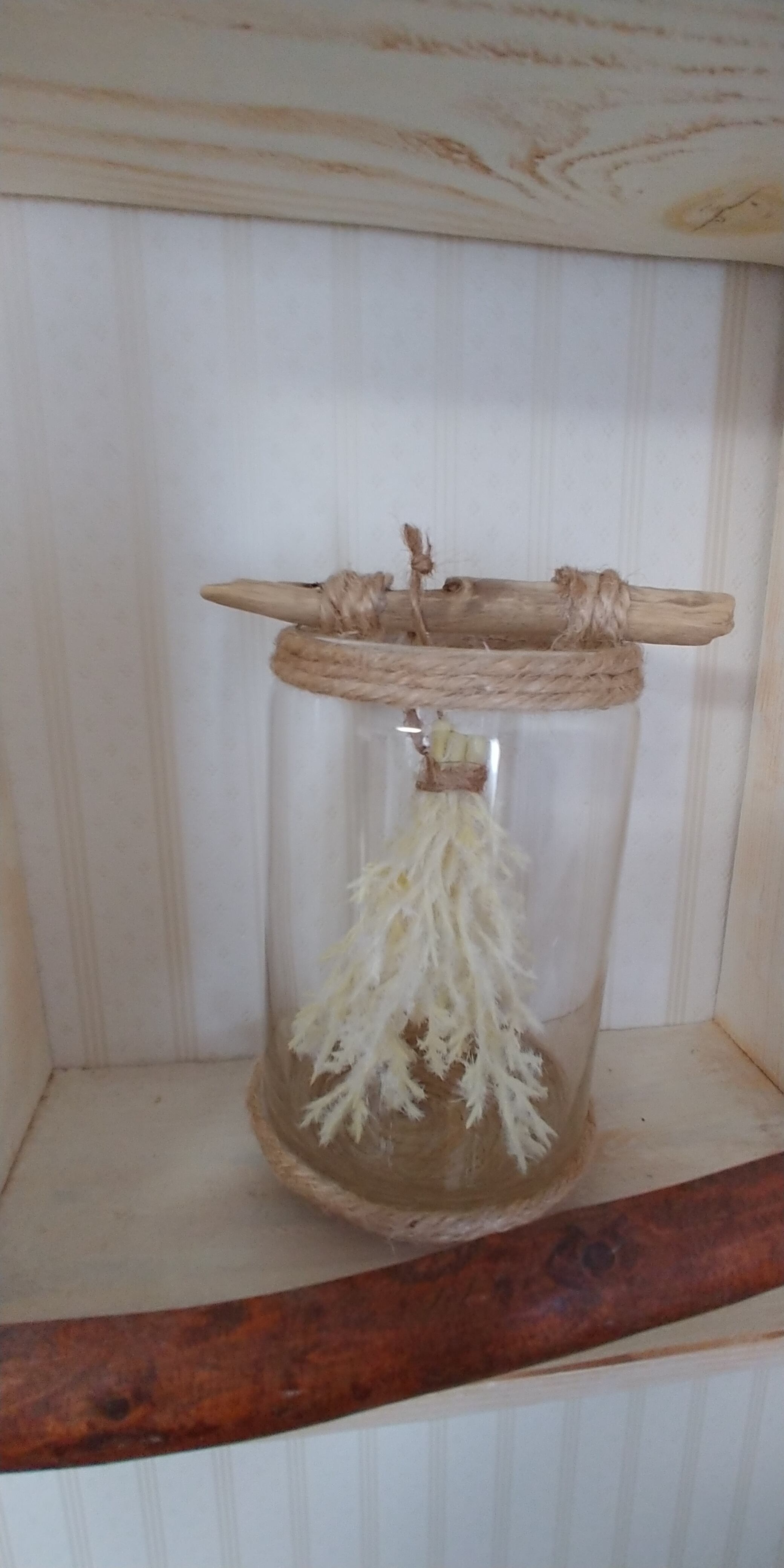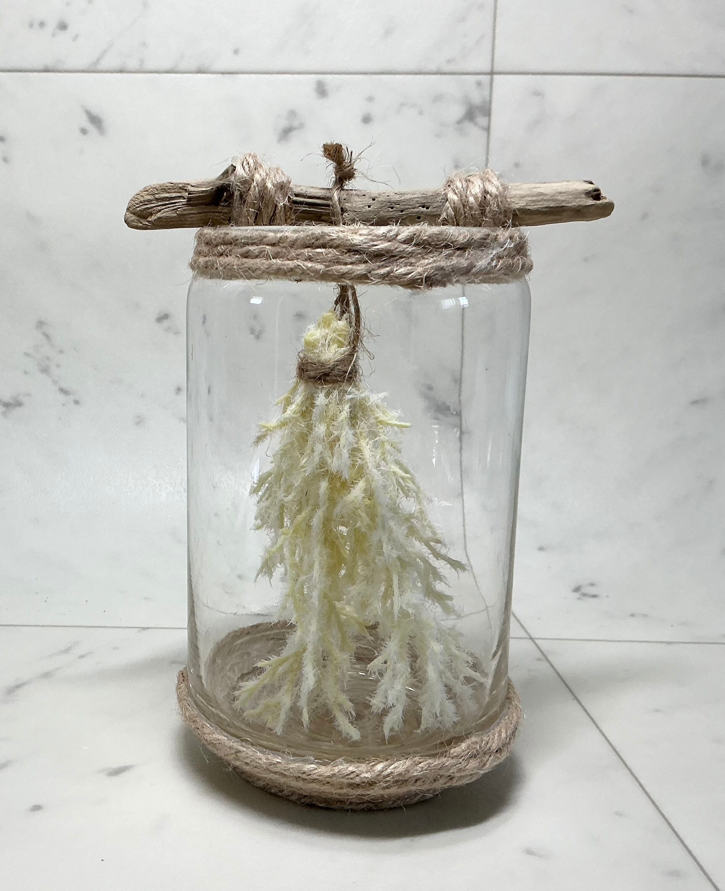 ボトル瓶に麻紐を巻きつけ