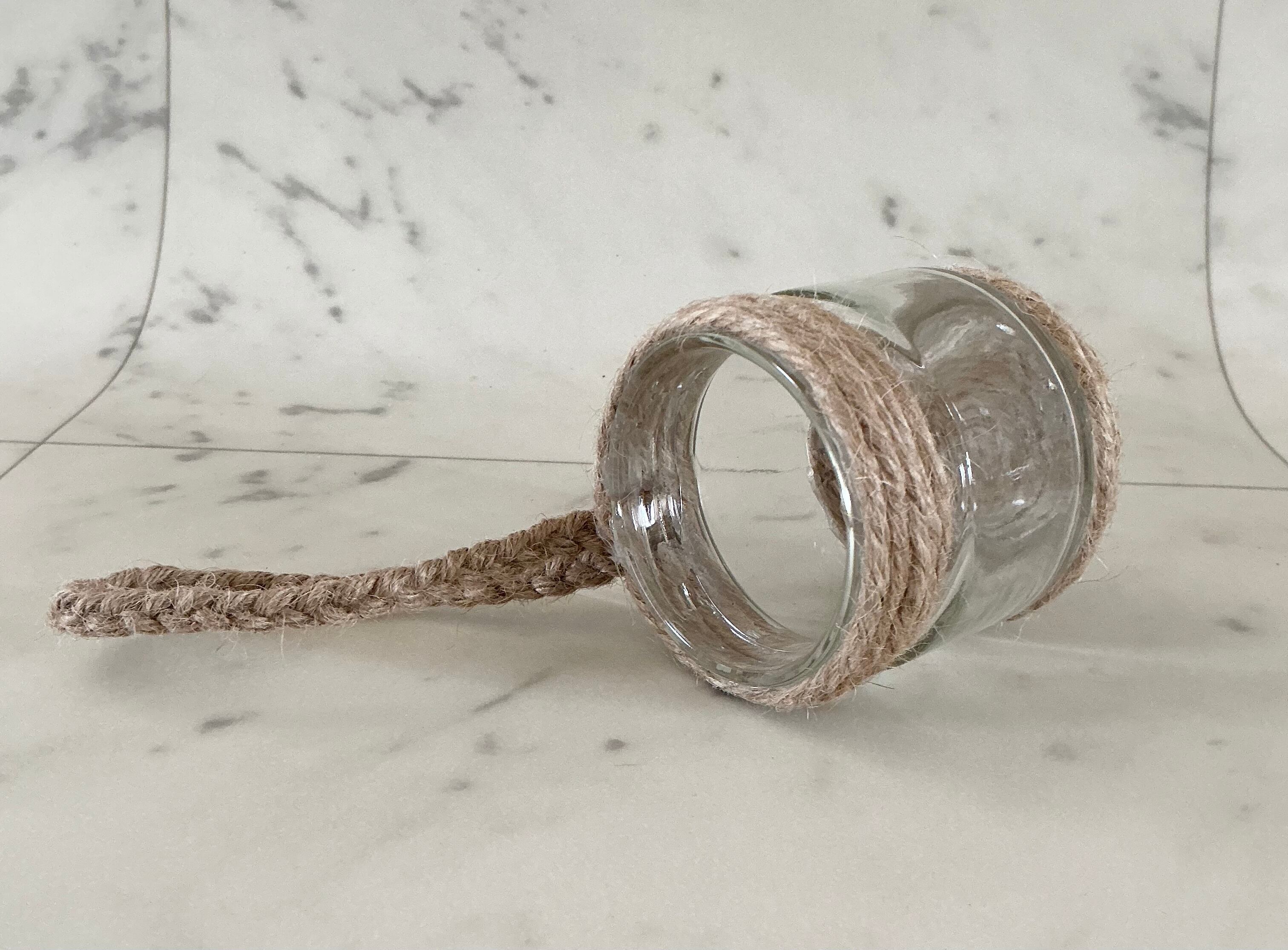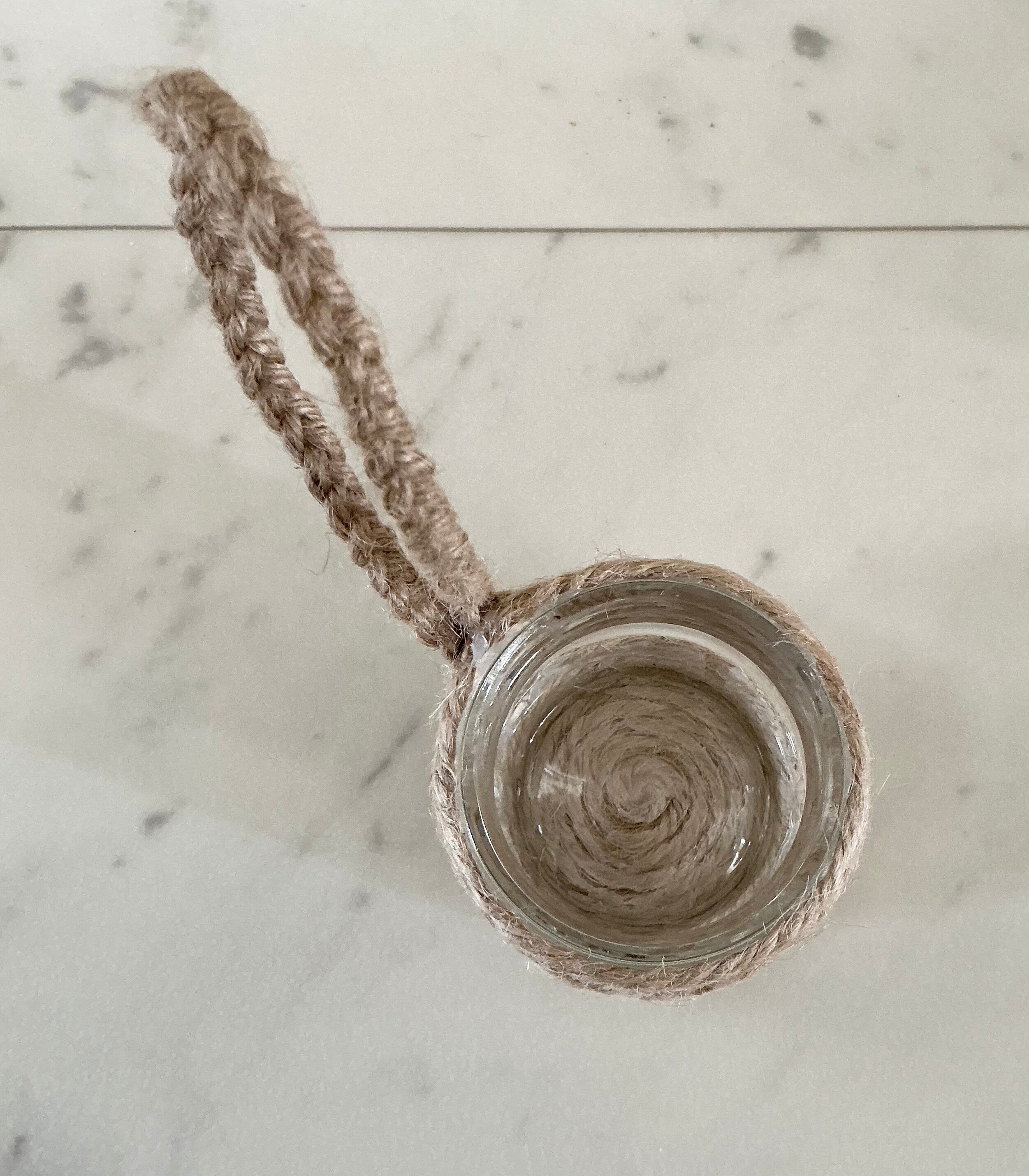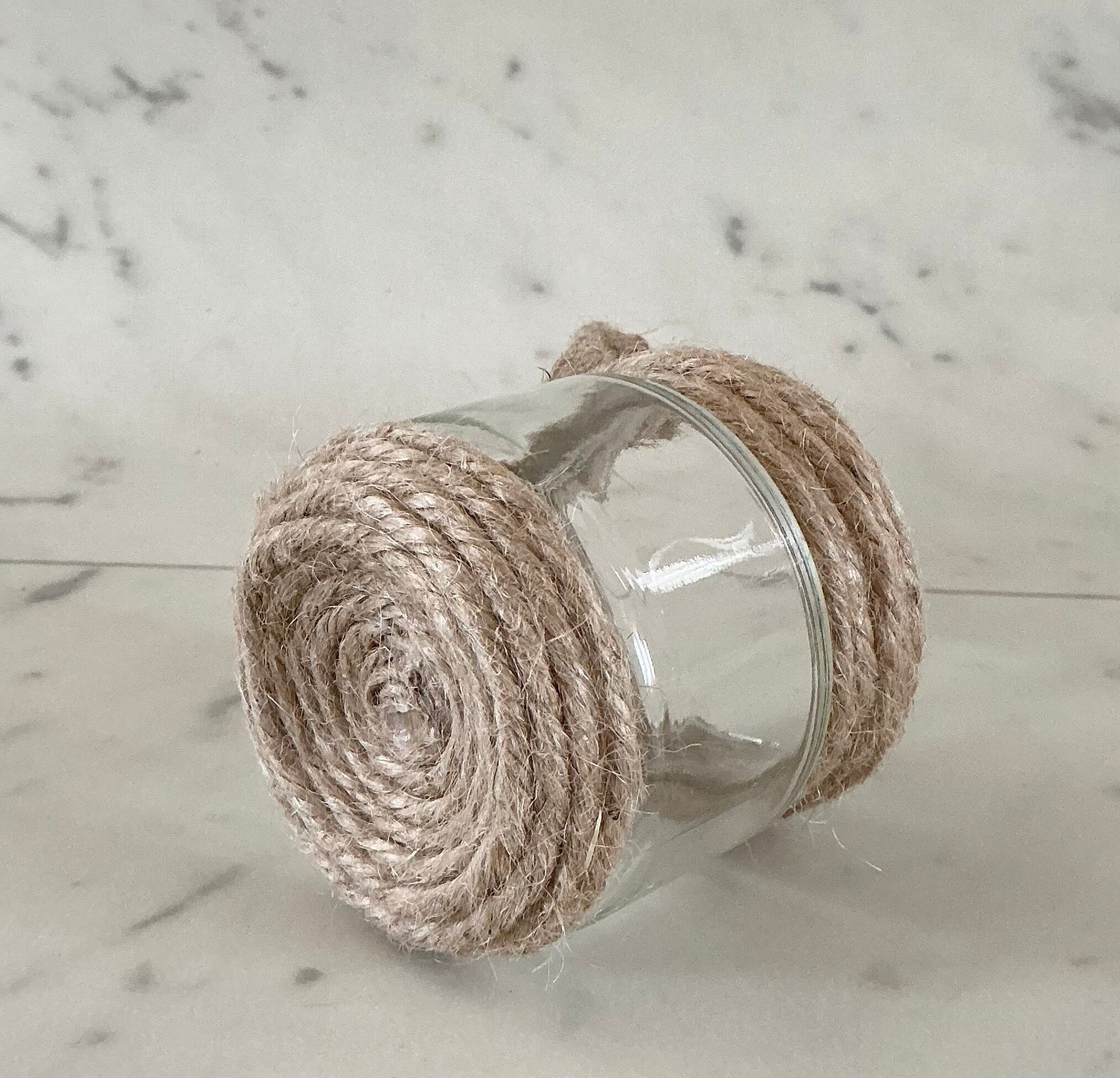 広口瓶の上下に 麻紐を巻きつけ