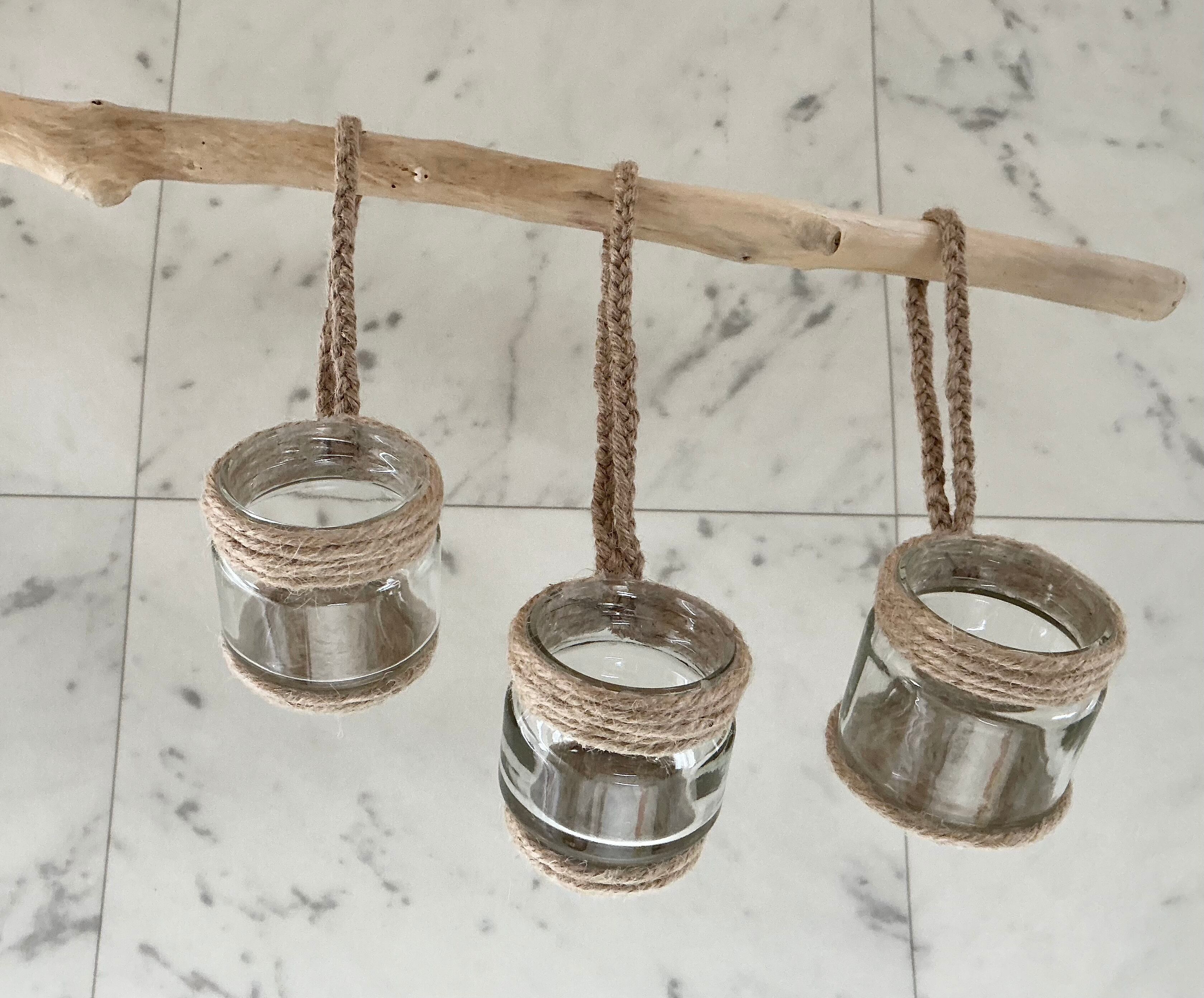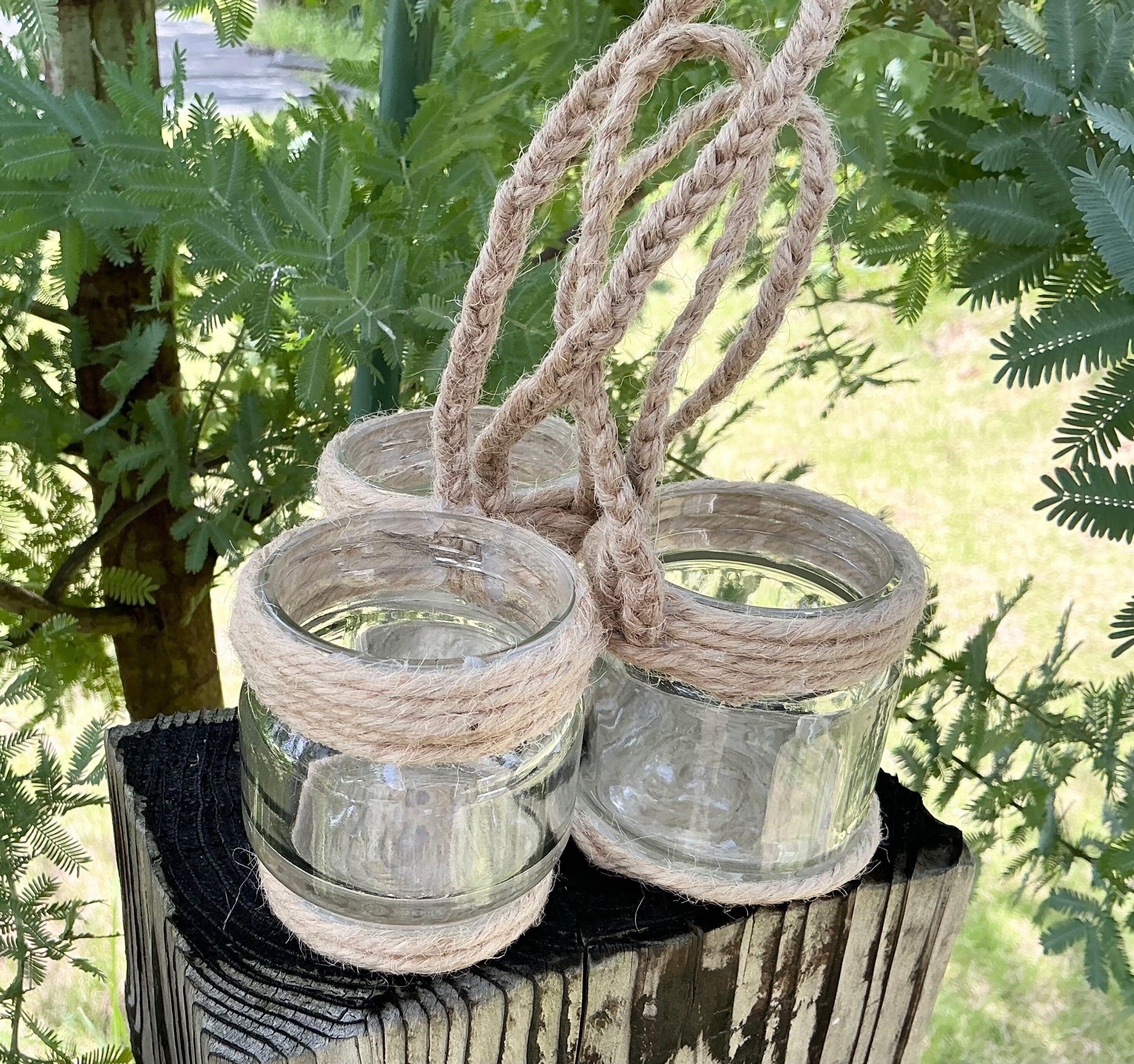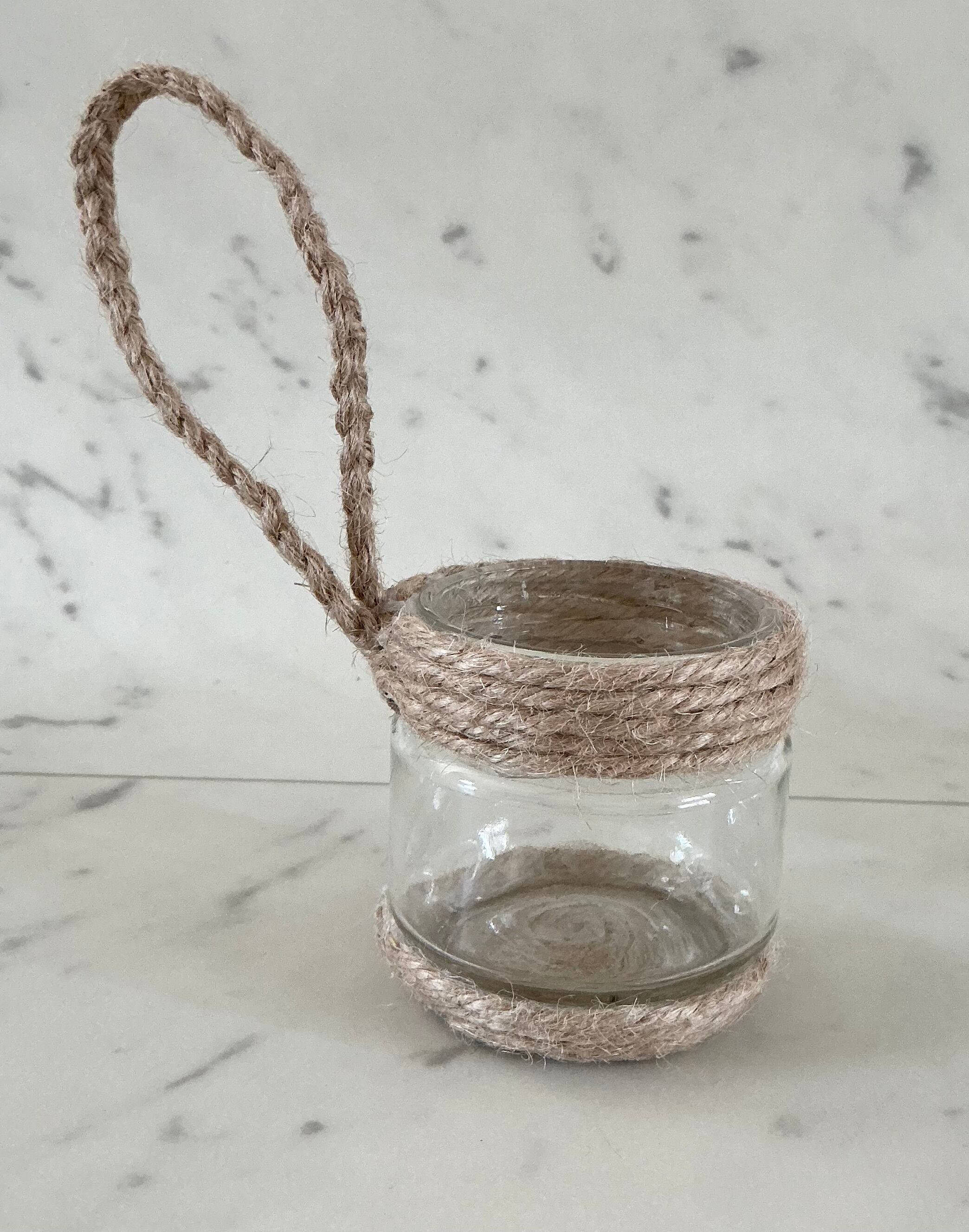 広口瓶の上下に 麻紐を巻きつけ