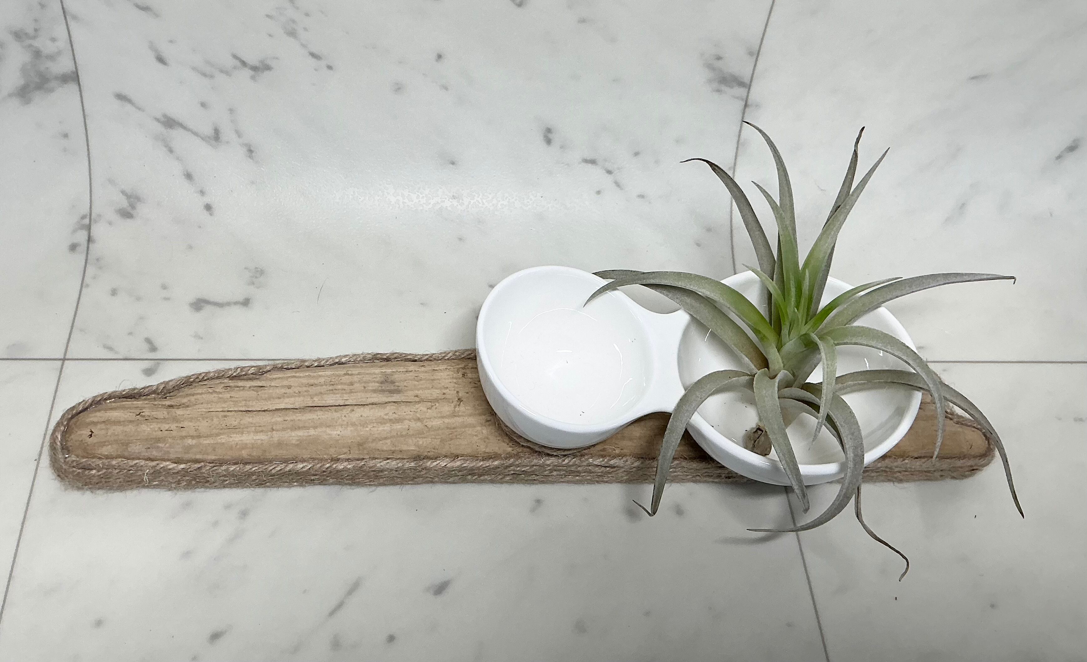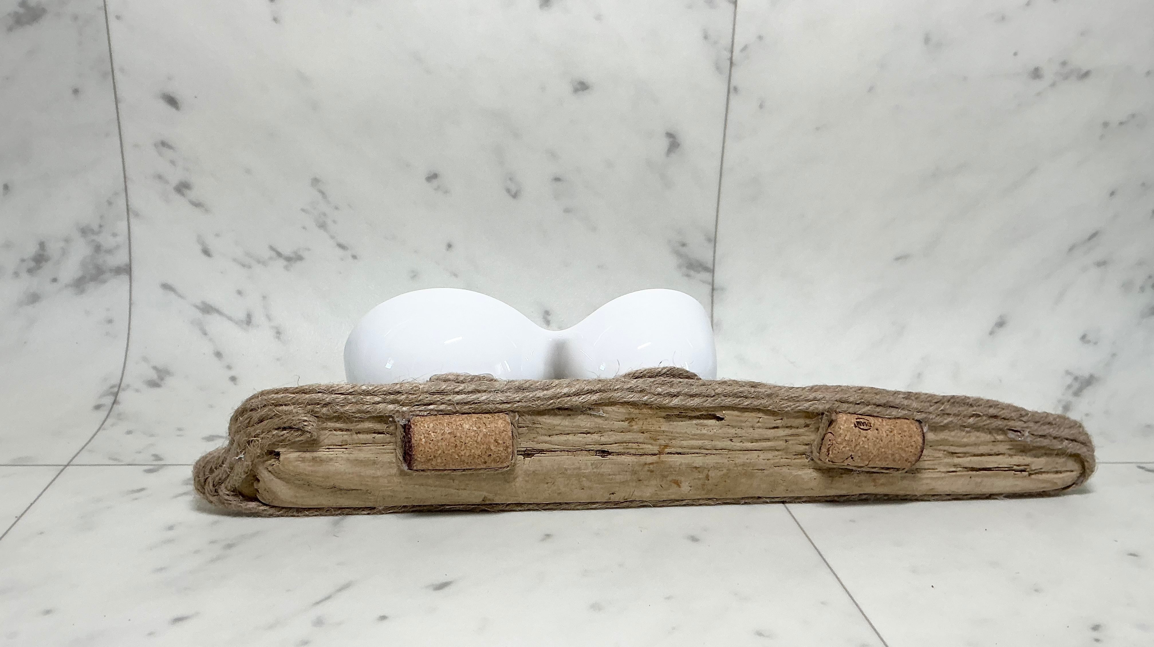 海岸に流れ着いた流木を 麻紐でトリミング