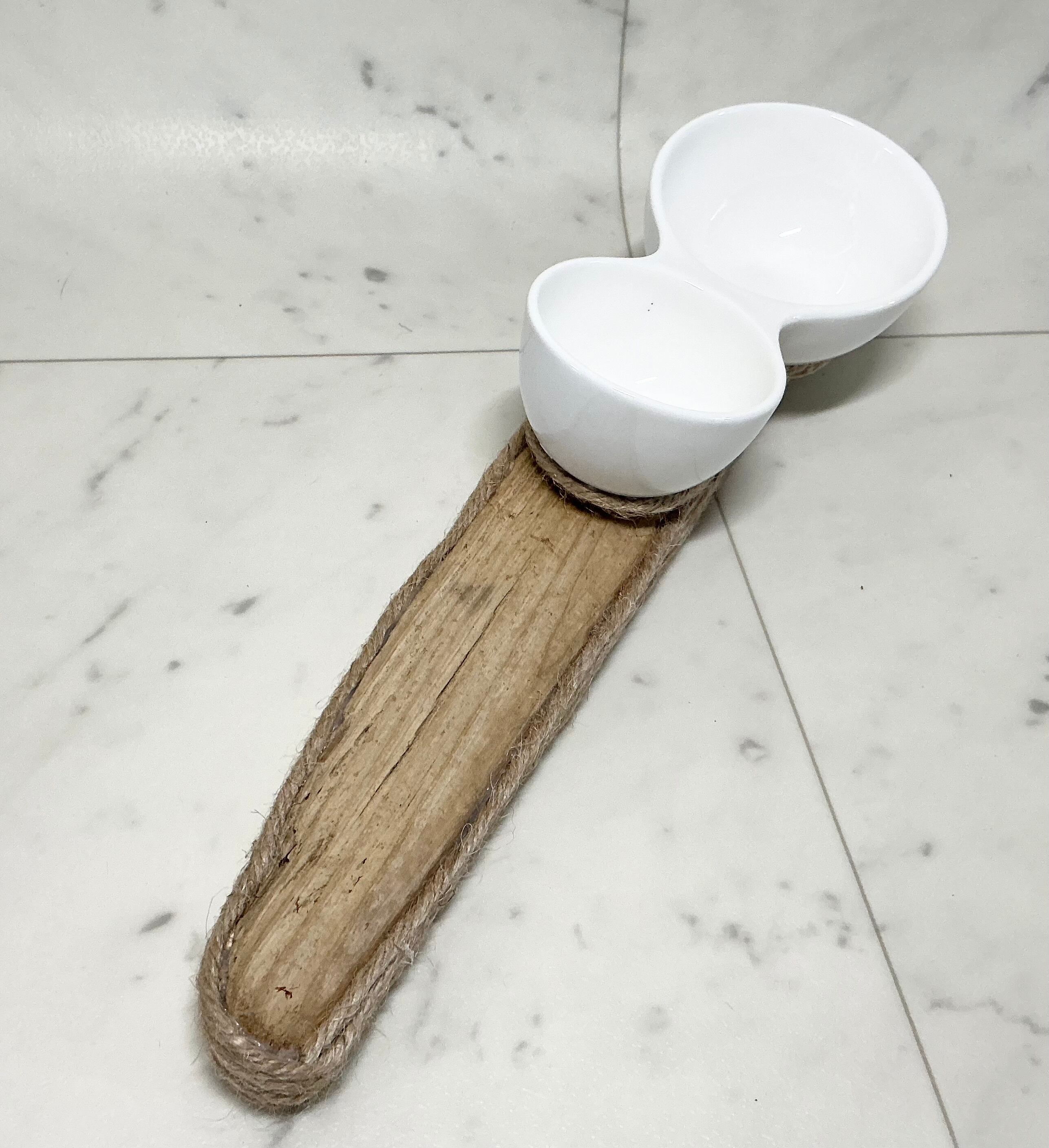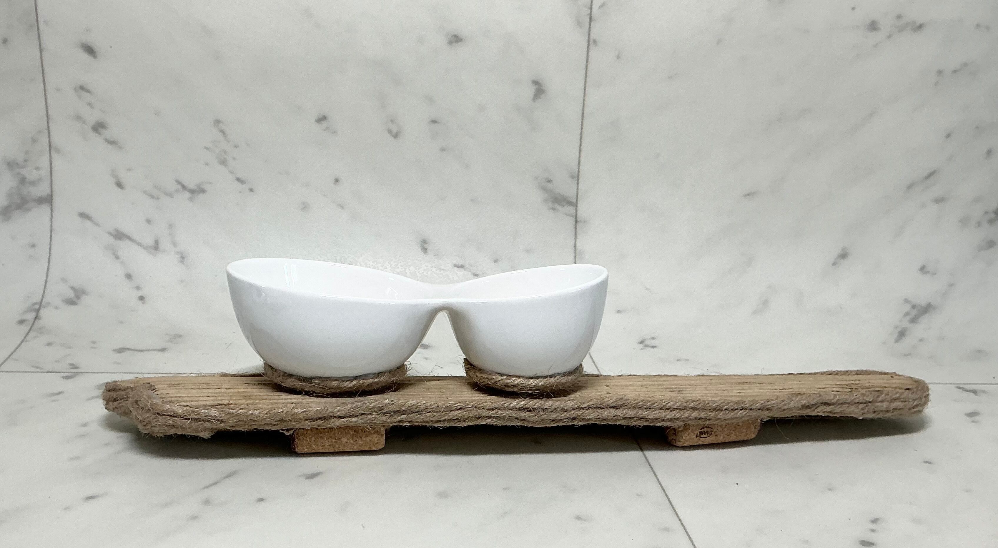 大小2つの連なった 白い丸陶器