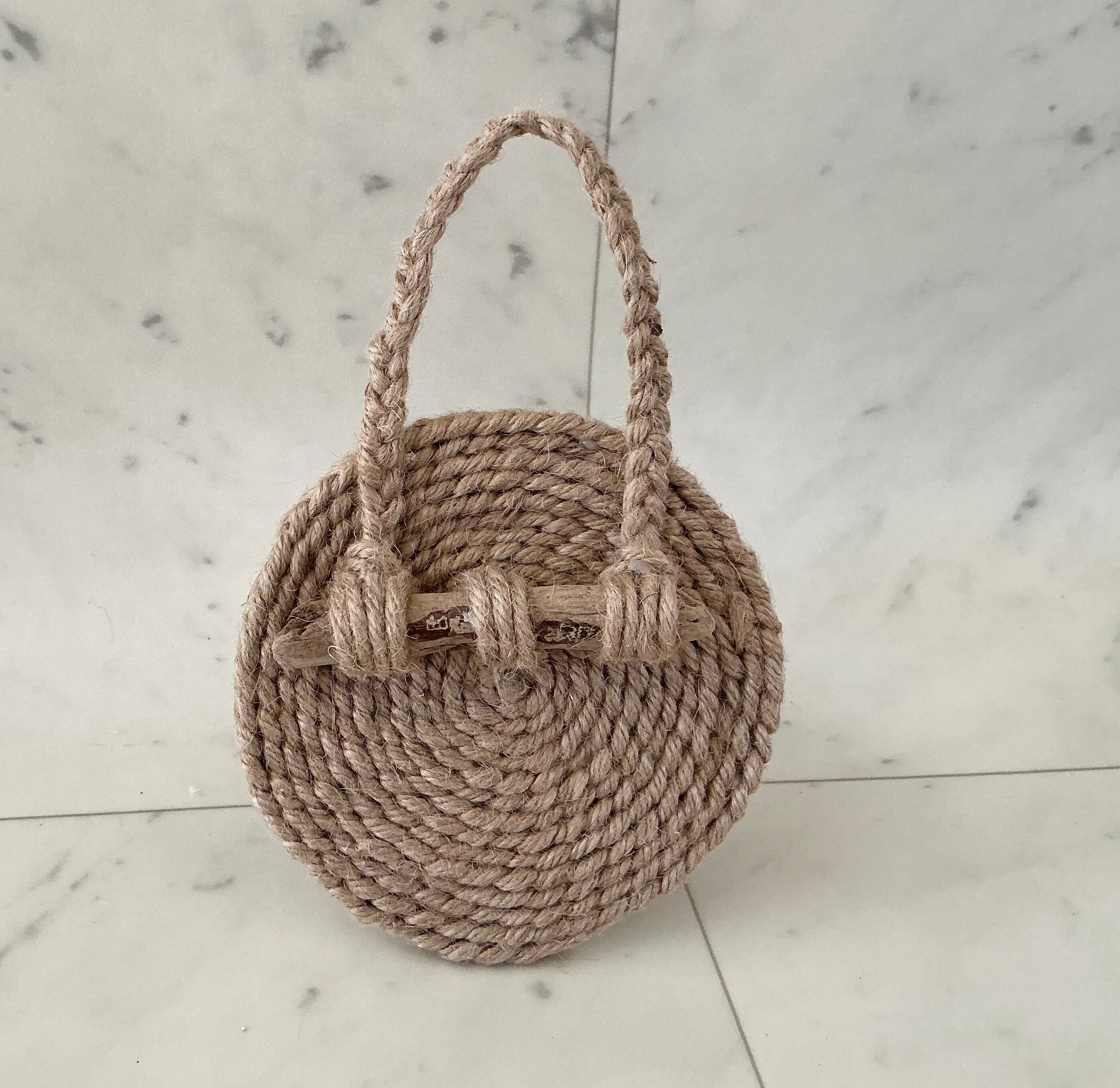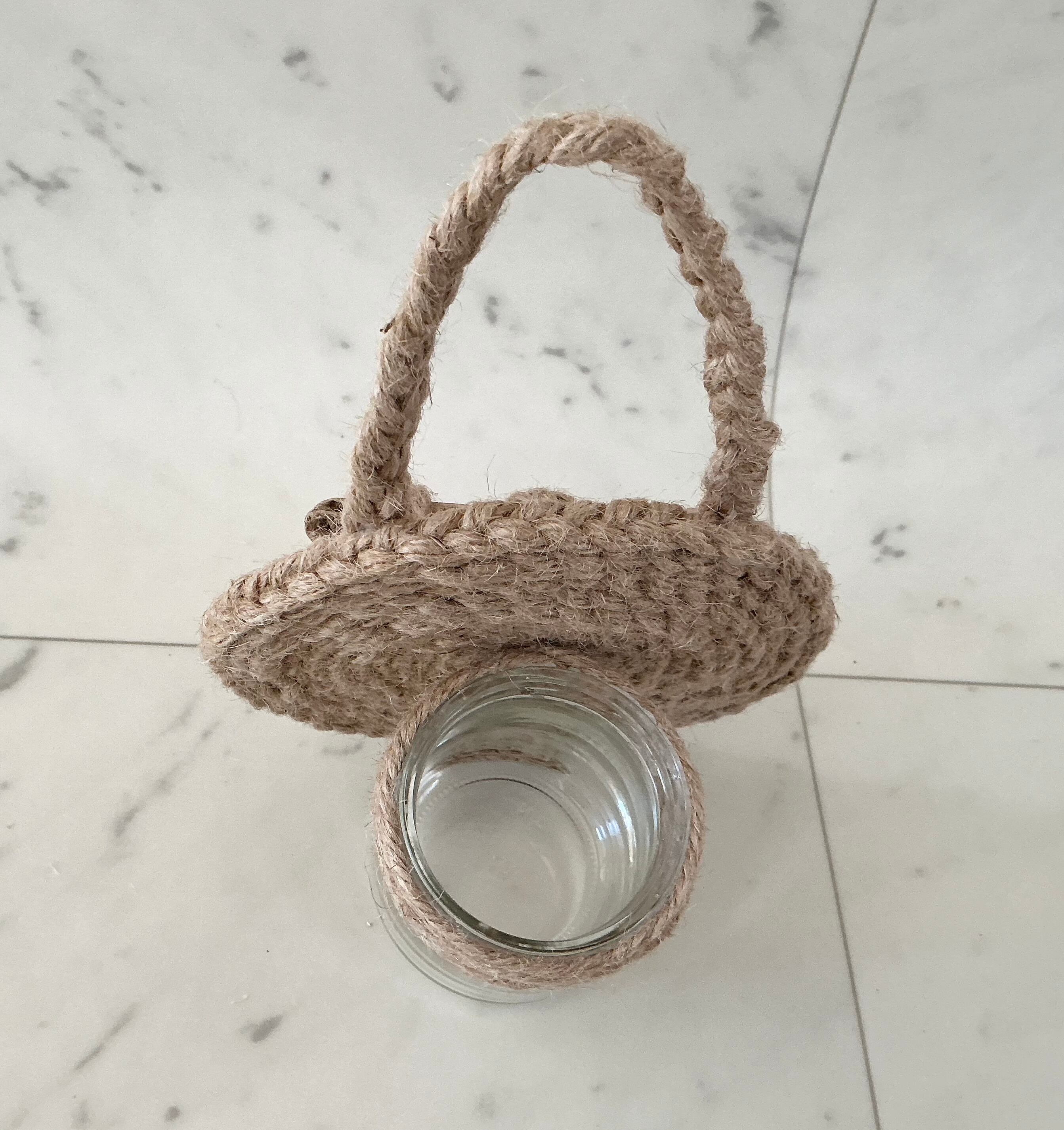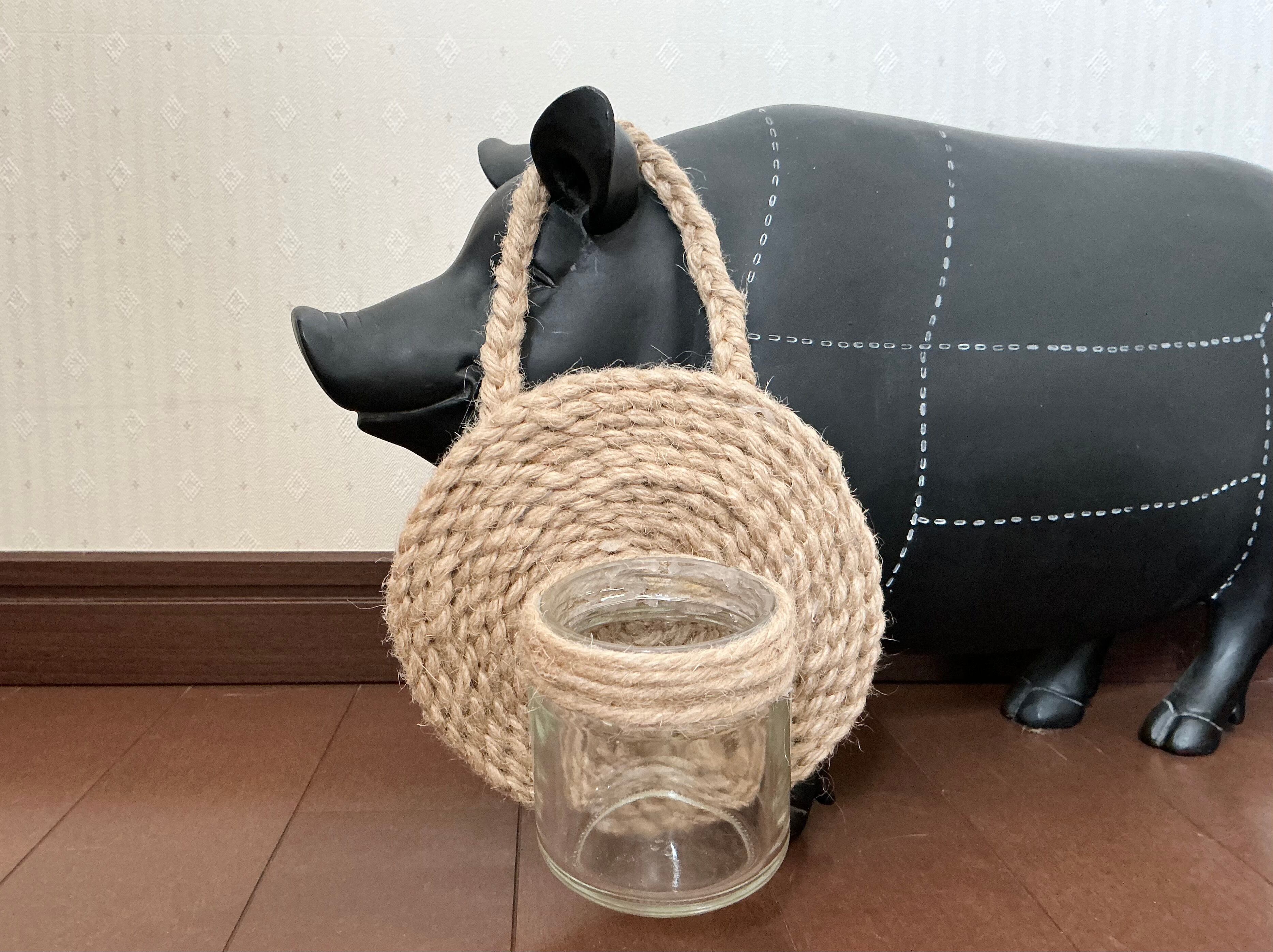 麻紐を編んでぐるぐるとコースター様に