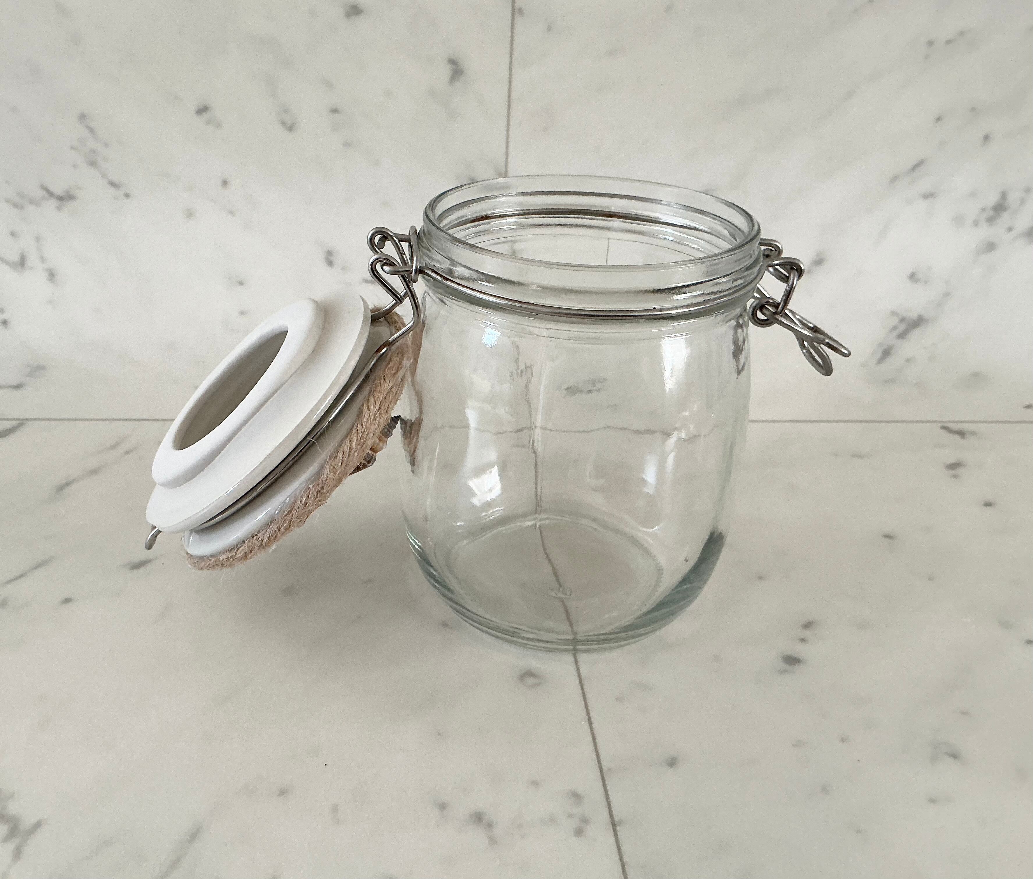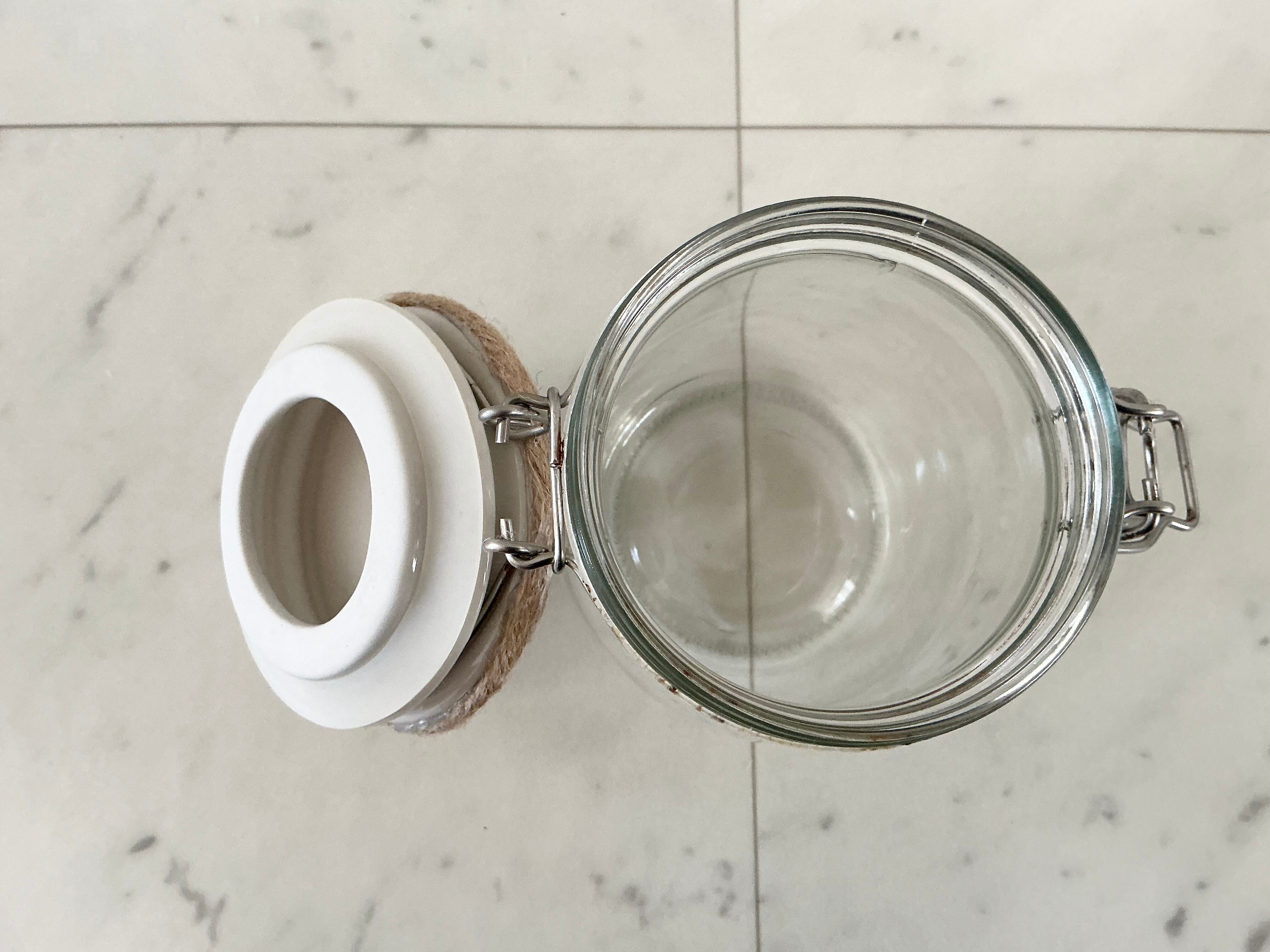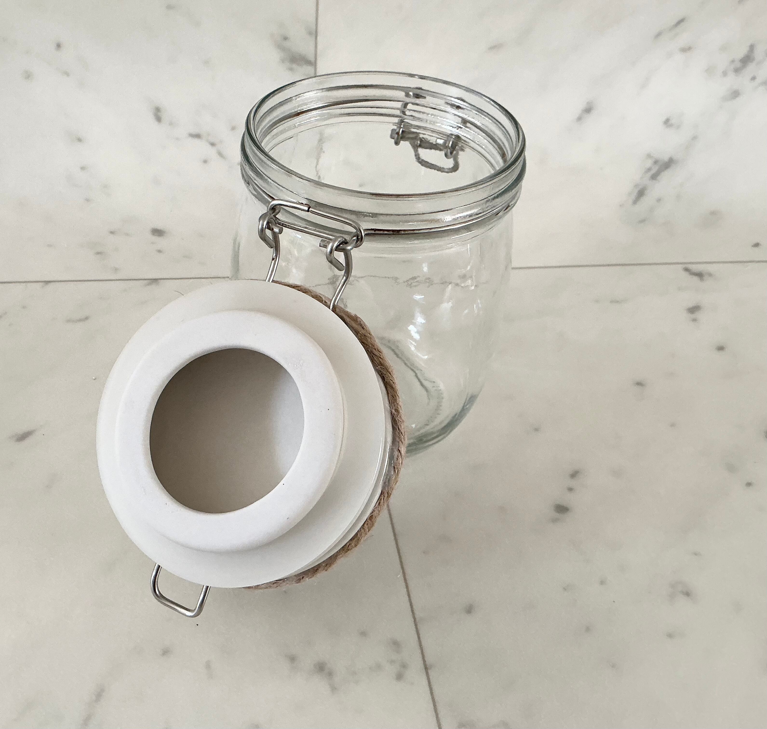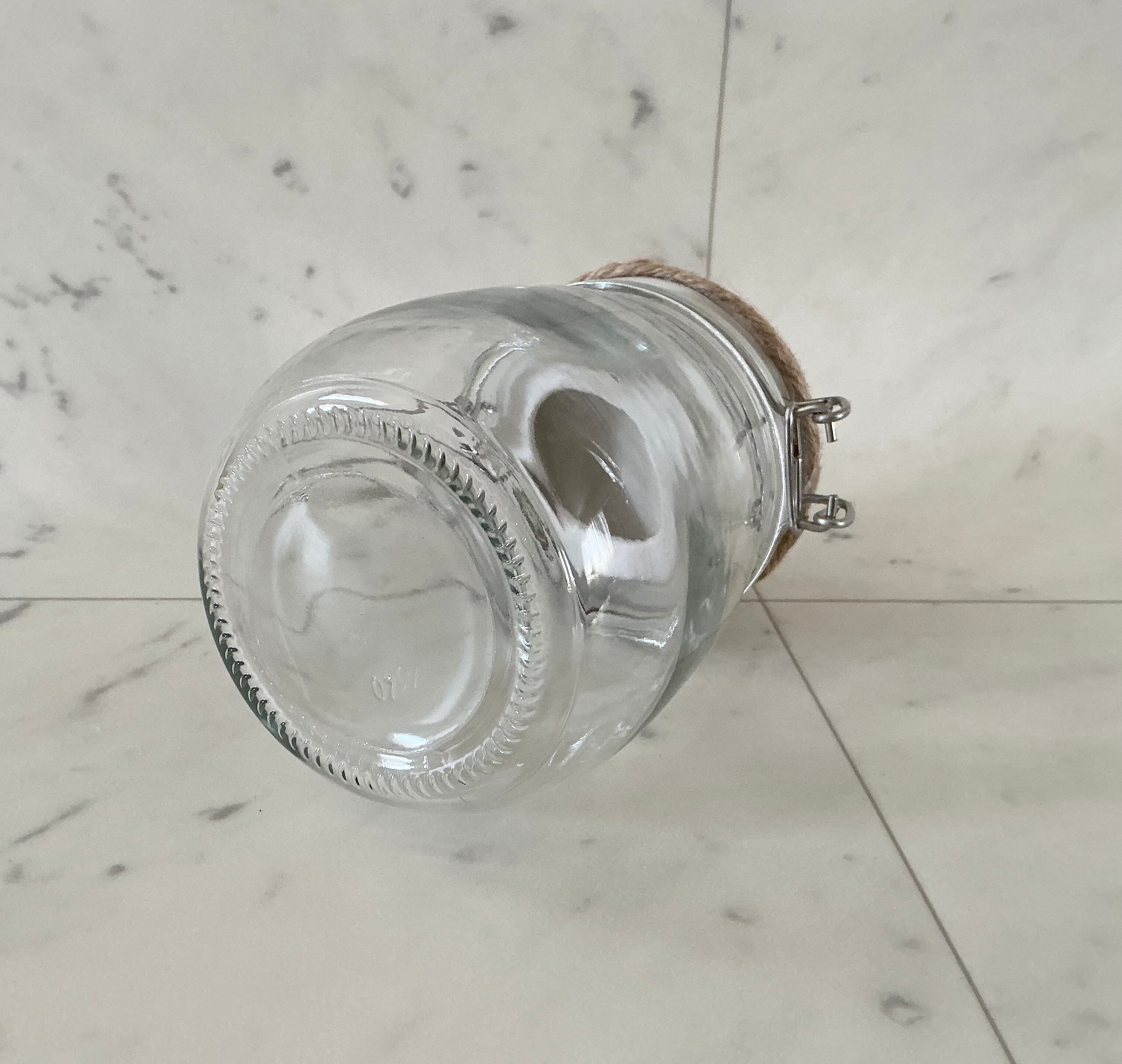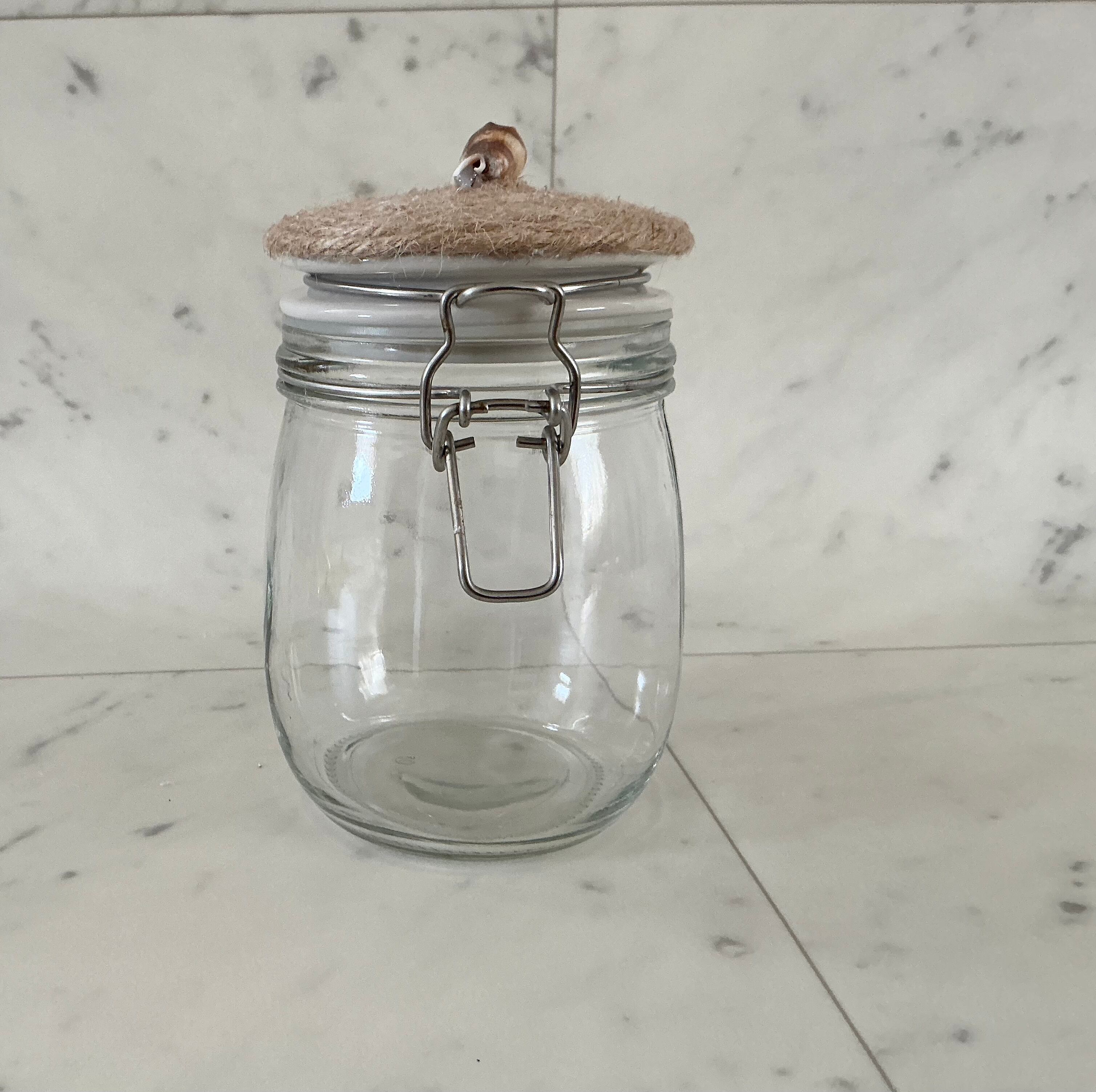 蓋上部に麻紐を巻き上に貝殻を付けました